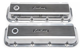 Valve Cover - Elite II - Short - Baffled - Breather Hole - Edelbrock Logo - Aluminum - Polished - Big Block Chevy - Pair