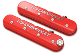 Valve Cover - Tall - Baffled - Chevrolet Logo - Aluminum - Red Machined - GM LS-Series - Pair