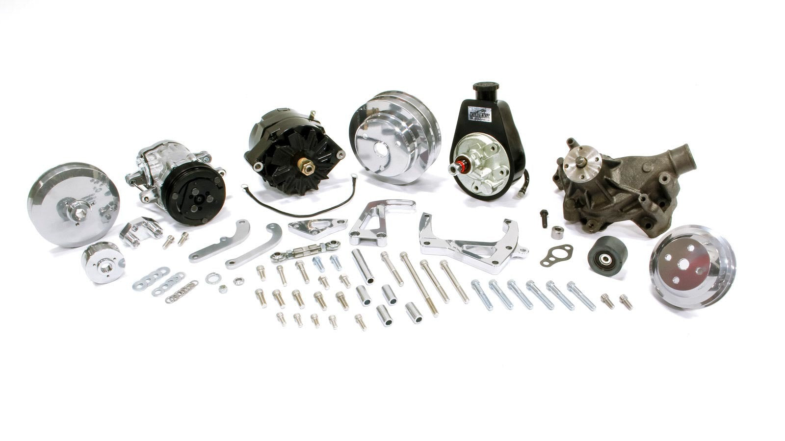 Pulley Kit - Sport Track - 6-Rib Serpentine - Aluminum - Silver Powder Coat - Long Water Pump - Small Block Chevy - Kit