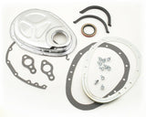 Timing Cover - 2-Piece - Gaskets / Hardware / Seal Included - Steel - Chrome - Small Block Chevy / GM V6 - Each