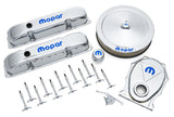 Engine Dress Up Kit - Air Cleaner / Valve Covers / Breather / Hardware / Timing Cover - Recessed Blue Mopar Logo - Steel - Chrome - Mopar B / RB-Series - Kit