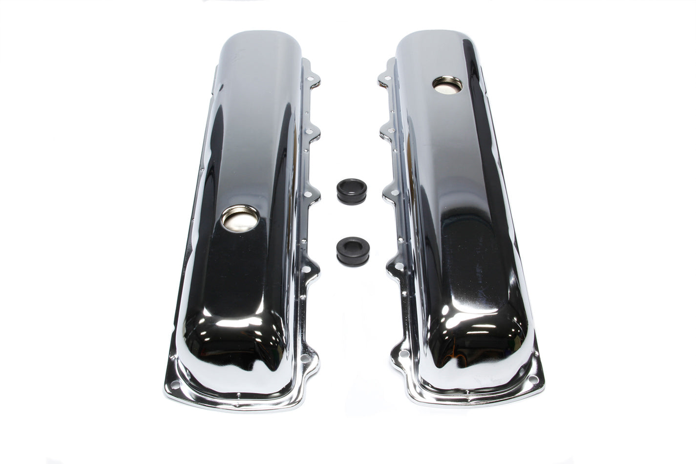 Valve Cover - Short - 2.813 in Height - Baffled - Breather Hole - Steel - Chrome - Oldsmobile V8 - Pair