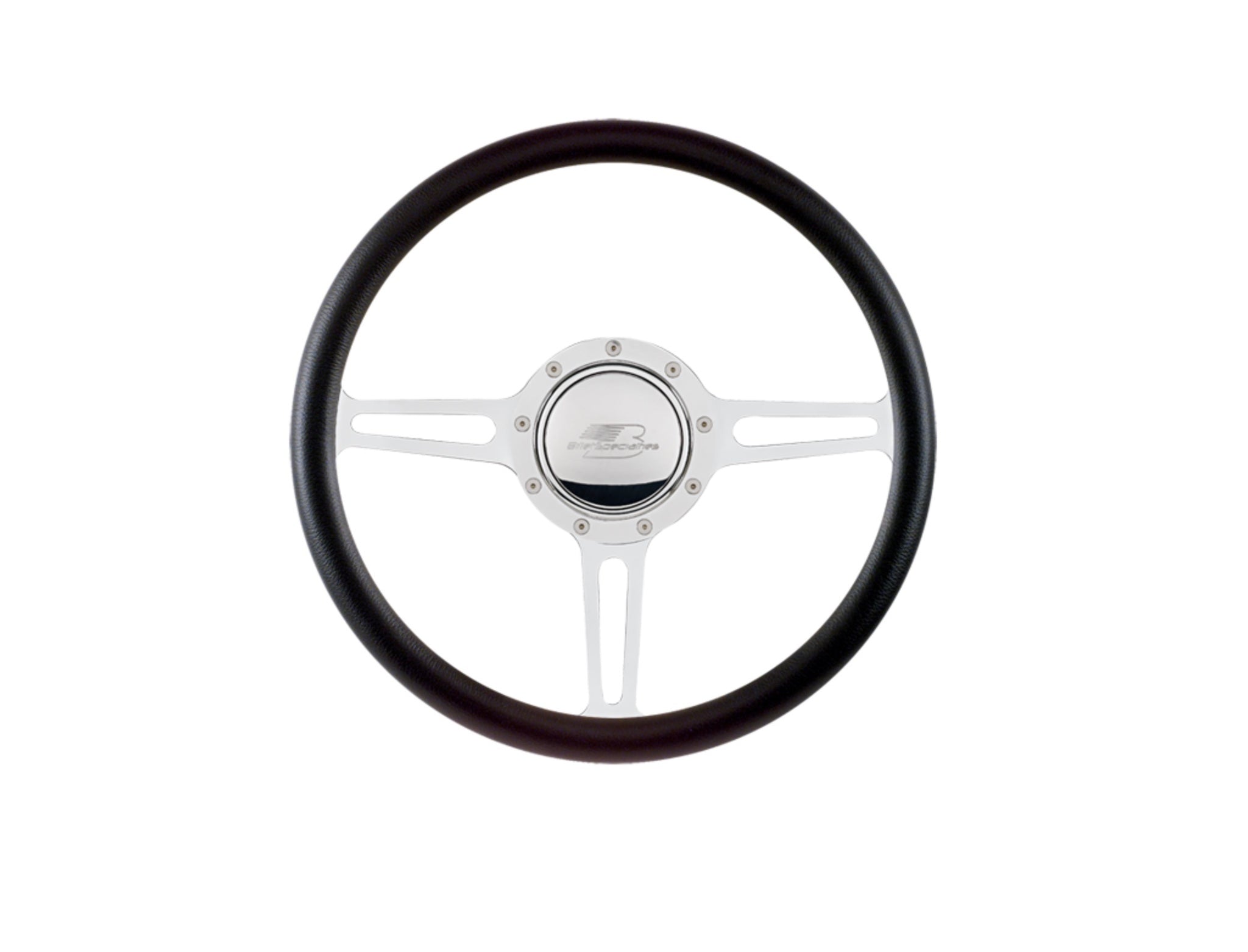 Steering Wheel - Split Spoke - 14 in Diameter - 2 in Dish - 3-Spoke - Milled Finger Notches - Aluminum - Polished - Each