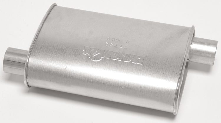 Muffler - Super Turbo - 2-1/4 in Offset Inlet - 2-1/4 in Offset Outlet - 14 x 4-1/4 x 9-3/4 in Oval - 18 in Long - Steel - Aluminized - Universal - Each