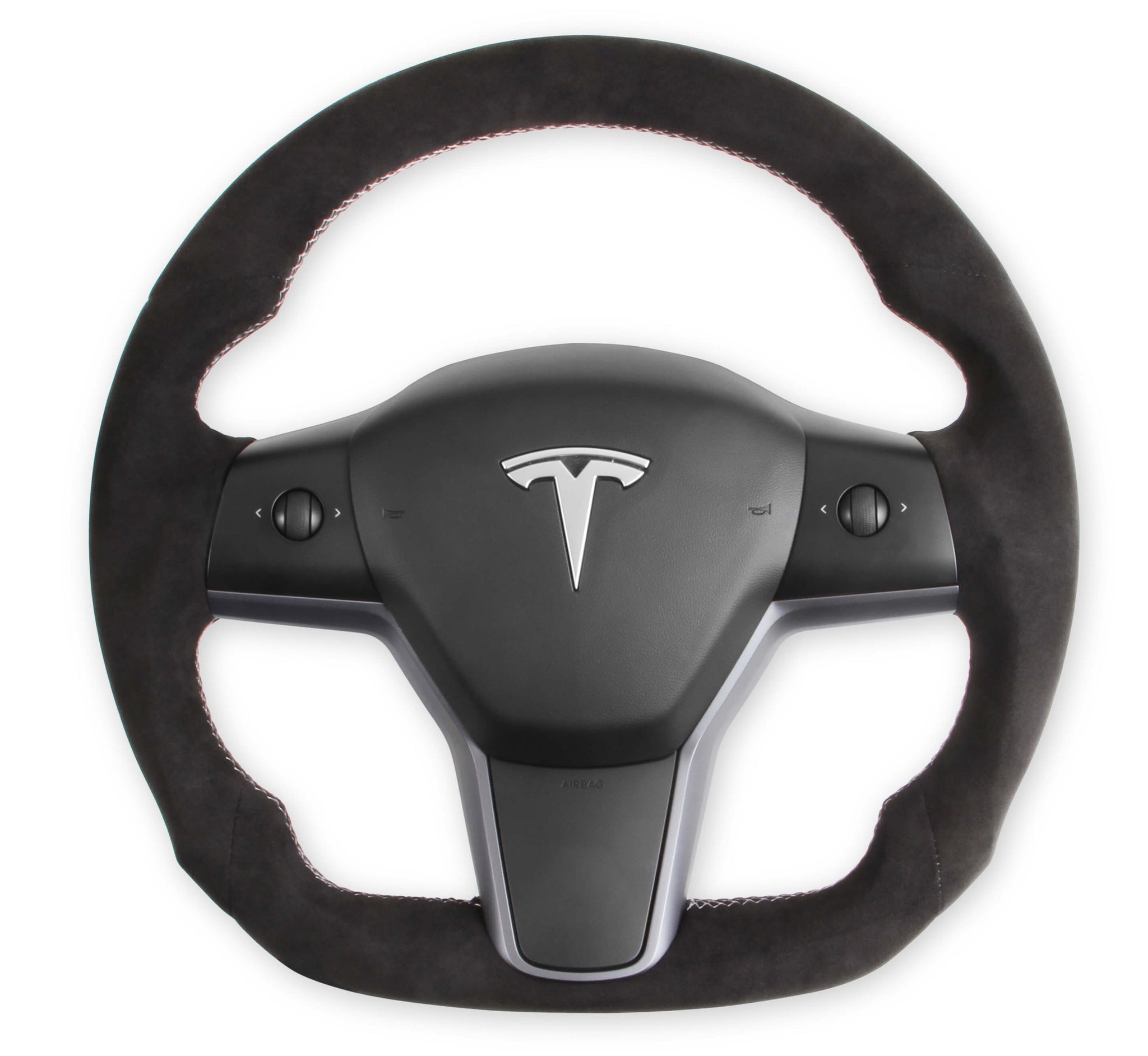 Steering Wheel - 14 in Diameter - D-Shaped - 3-Spoke - Alcantara - Black - Tesla 3 / Y 2017-21 - Each